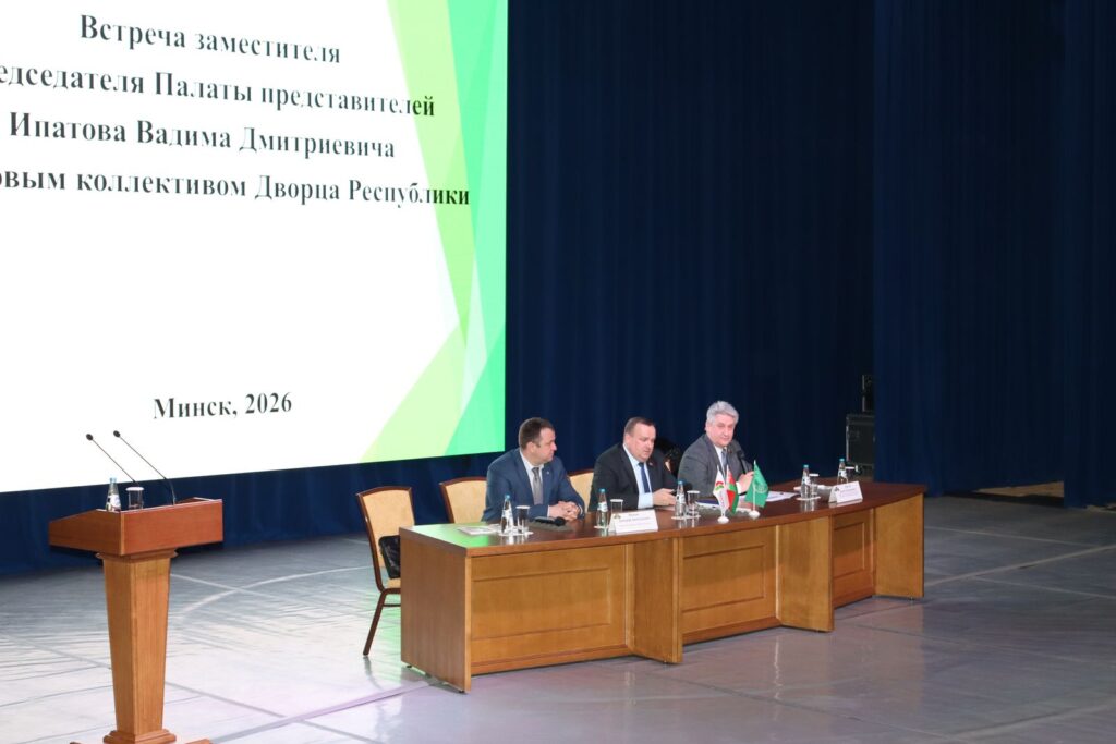 В рамках проведения Единого дня информирования, а также реализации проекта открытого диалога власти с населением заместитель Председателя Палаты представителей Национального собрания Республики Беларусь Вадим Ипатов 19 марта провел встречу с трудовым коллективом государственного учреждения «Дворец Республики» Управления делами Президента Республики Беларусь.