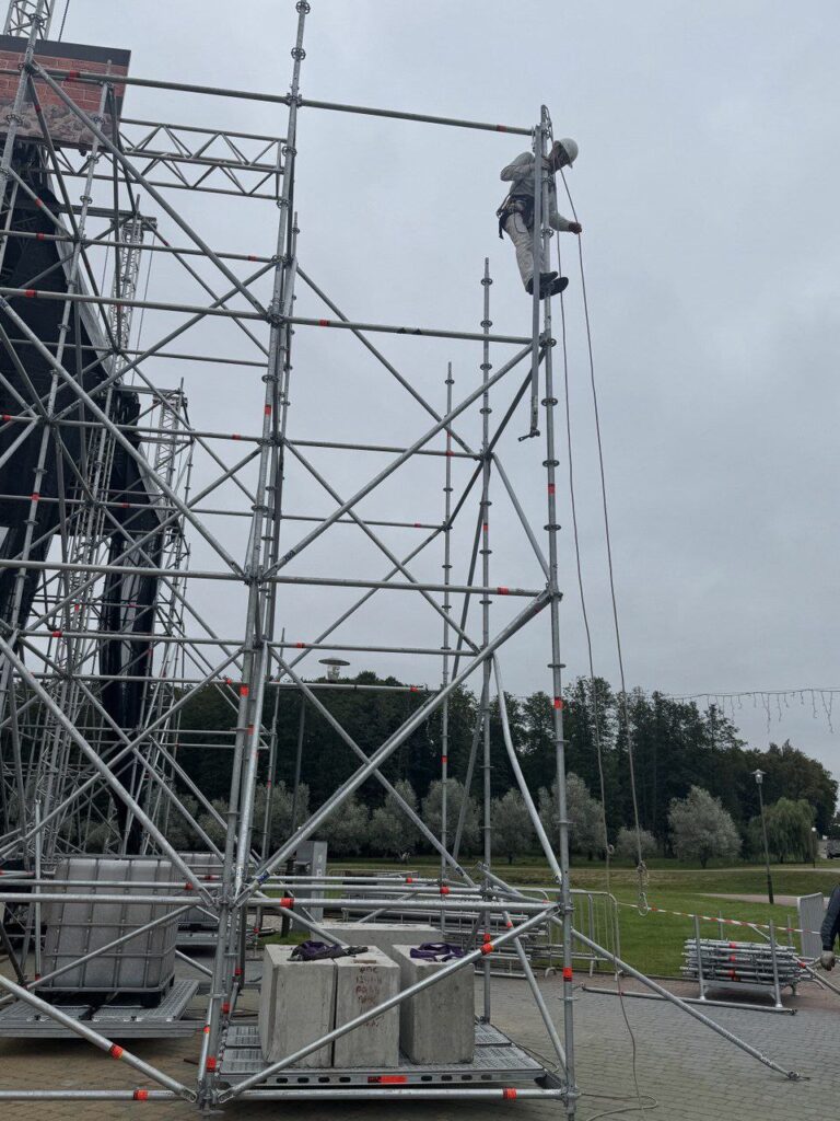 Если посмотреть изнутри на подготовку к мероприятию, то она представляет собой сложный комплексный технический процесс, поскольку для качественного выступления нужно обеспечить постановку сцены и всех необходимых декораций, грамотно настроенное звучание всей аппаратуры: от музыкальных инструментов до микрофона солиста; качественное световое шоу, способное слаженно срабатывать с играющими композициями; достойный уровень акустики; дополнительные элементы оформления. В основном монтаж сцены и всего оборудования осуществляется за несколько дней до мероприятия, но иногда сроки до того сокращены, что монтировать начинают ранним утром либо даже ночью. Но качество работы от этого не падает, наоборот, в таких условиях аккумулируются все силы сотрудников и проявляется командный дух. После установки сценического комплекса осуществляется инсталляция всего светового и видеооборудования, а также готовится звуковое оформление сцены.