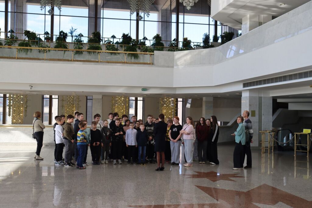 На днях учащиеся младших и средних классов Ушаччины сменили привычные школьные кабинеты на величественные залы главного культурного и политического центра страны. Экскурсия во Дворец Республики стала для ребят настоящим путешествием в мир государственного масштаба и высокого искусства.