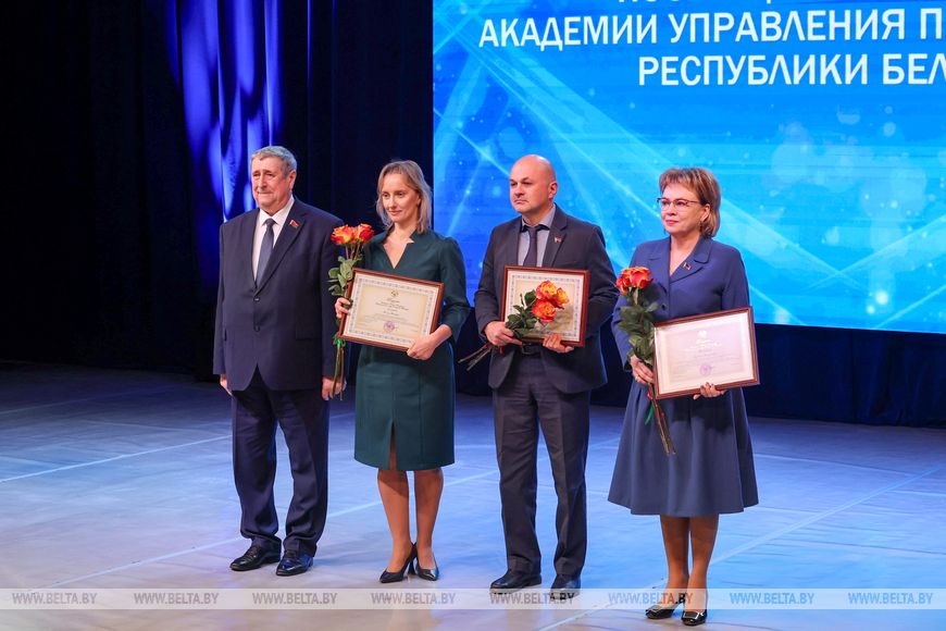 Лучших сотрудников Академии управления при Президенте Беларуси отметили во время торжественного собрания по случаю 35-летия кузницы управленческих кадров, которое прошло на сцене Дворца Республики.