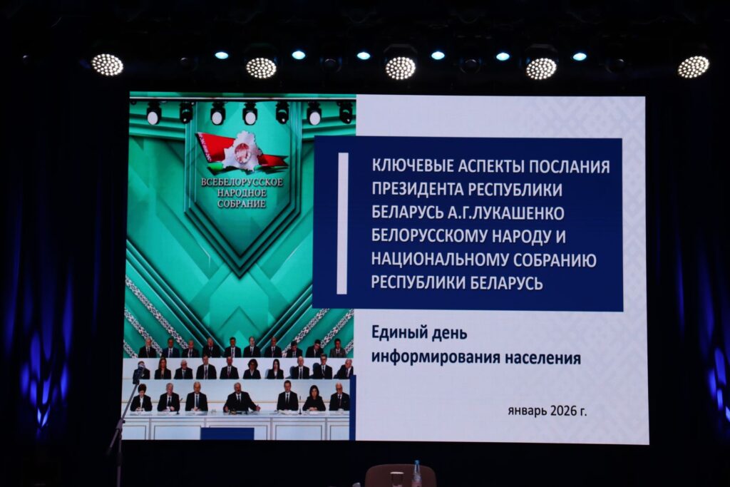 Во Дворце Республики прошел Единый день информирования, на котором обсудили ключевые аспекты Послания Президента Республики Беларусь А.Г.Лукашенко белорусскому народу и Национальному собранию Республики Беларусь. В приветственном слове к коллективу член информационно-пропагандистской группы учреждения Юрий Наумович обратил внимание присутствующих на то, что в Послании акценты расставлены на формирование самодостаточного и конкурентоспособного государства, в центре внимания которого – человек.